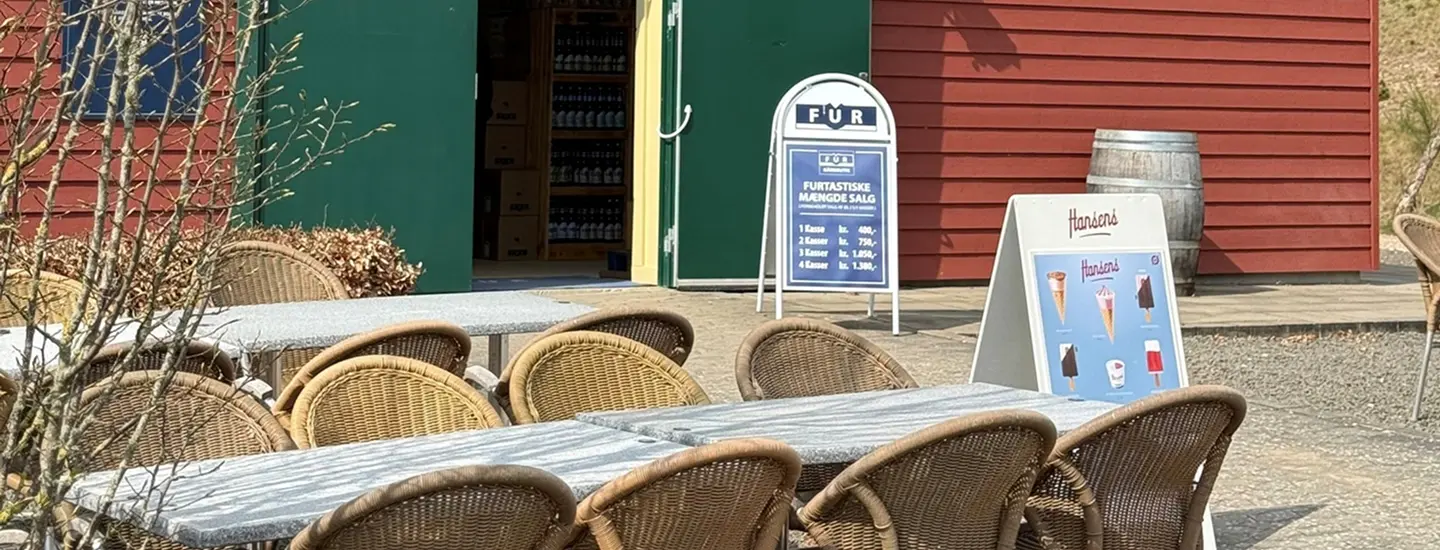 Velkommen til en fuldendt oplevelse hos Fur Bryghus! Besøg den hyggelige gårdbutik og nyd en øl, mens du udforsker udvalget af specialprodukter. Gårdbutikken er åben med selvbetjening alle ugens dage fra 8:00-22:00 - du får nemt adgang med mobilen og betaler dine køb med Mobilepay.